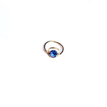 Dans le creux, un strass bleu piscine est suspendu par deux petits anneaux, comme flottant au centre.