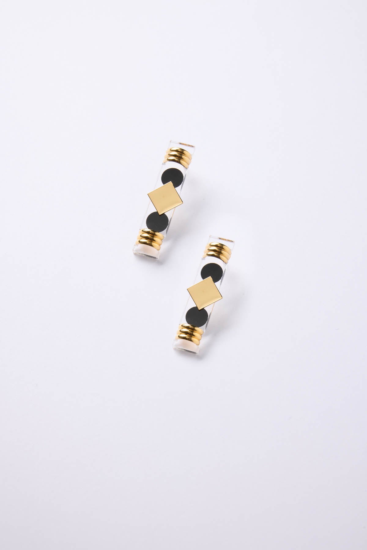 ◦ Ces boucles d'oreilles sont fabriquées avec du plexiglass et du laiton doré à l'or 24k.