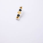 ◦ Les pièces en laiton dorées à l'or fin 24k sont assemblées et collées à la main par notre bijoutière dans notre atelier.